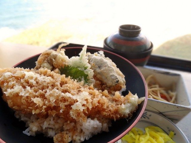 追分ソーランラインの国道228号沿いの原歌海岸にある道の駅「上ノ国もんじゅ」。施設の2階にはレストランがあり、眼下に広がる日本海の景色を眺めながら、地場産の新鮮な海の幸や山の幸をふんだんに使った料理をゆっくりと楽しむことができます。地元では「てっくい」と呼ばれる、前浜で上がったヒラメを使った「てっくい天丼」は1番の人気メニュー。